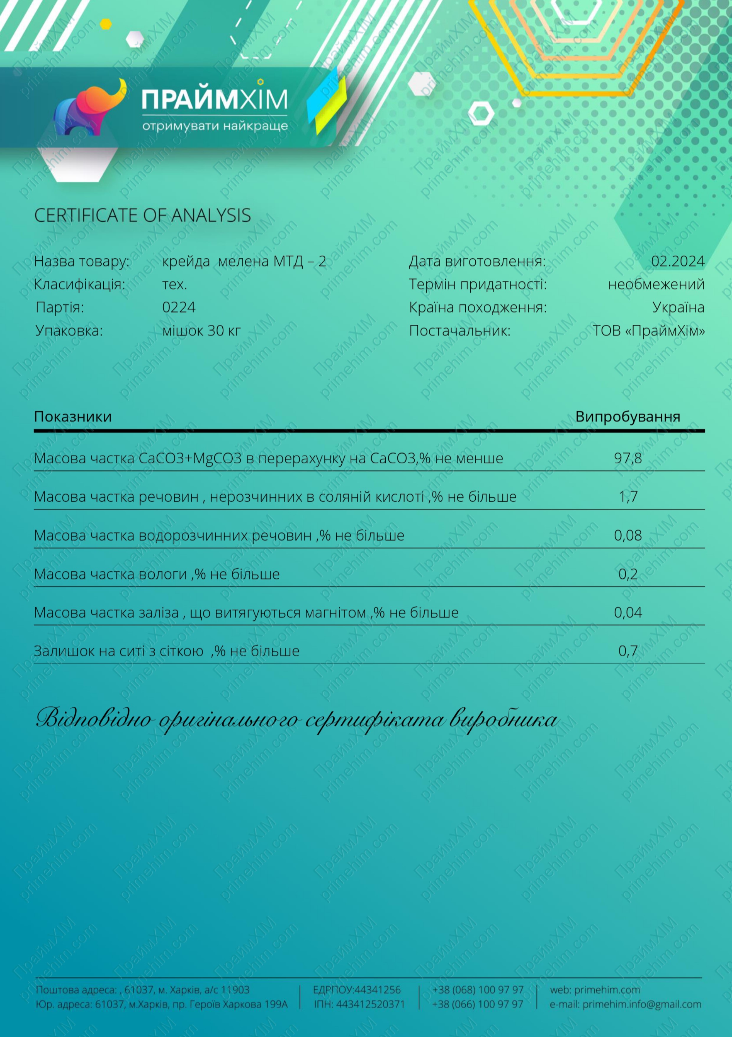 Технический мел МТД-2 — это один из видов карбоната кальция, который широко используется в промышленности. Вот основные характеристики технического мела МТД-2: