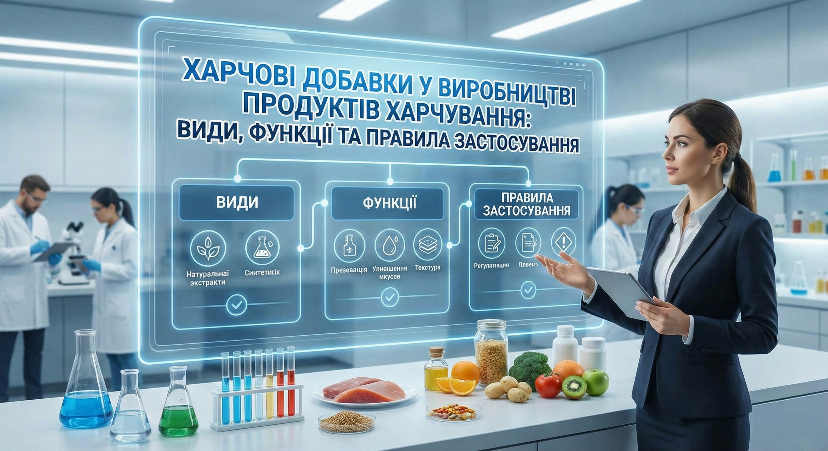 Харчові добавки у виробництві продуктів харчування відіграють важливу роль у забезпеченні стабільної якості, безпечності та прогнозованих технологічних властивостей готової продукції. Їх застосовують для покращення текстури, збереження смаку й аромату, стабілізації складу, регулювання кислотності, збільшення терміну придатності та підтримання зовнішнього вигляду продукту.